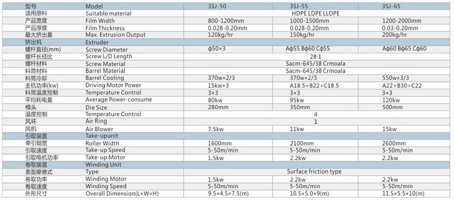 高精度的模具及高效風環(huán)冷卻系統(tǒng),保證薄膜良好的厚薄均勻度產(chǎn)出效率高。