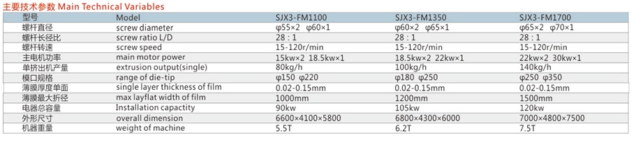 SJX3-FM三層共擠旋轉(zhuǎn)機(jī)頭吹膜機(jī)組