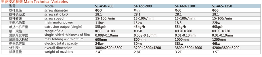 SJ-A50、 55、 60、65系列高低壓超薄吹膜機組